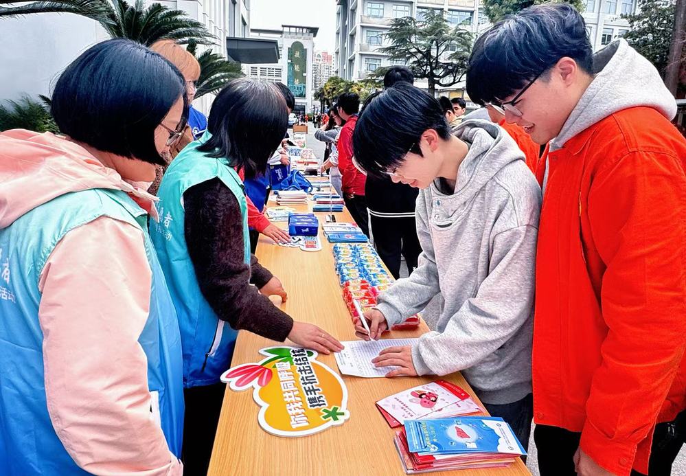 中午11时,在区疾控中心工作人员的统一带领下,志愿者们于食堂门口正式启动线下主题宣传活动。现场精心设置科普知识讲解、宣传折页发放、趣味有奖问答、创意印章制作、健康咨询答疑等多元互动环节,丰富的内容、生动的形式吸引了大批师生驻足参与,活动现场人头攒动、氛围热烈,充分调动了师生学习结核病防治知识的积极性。
