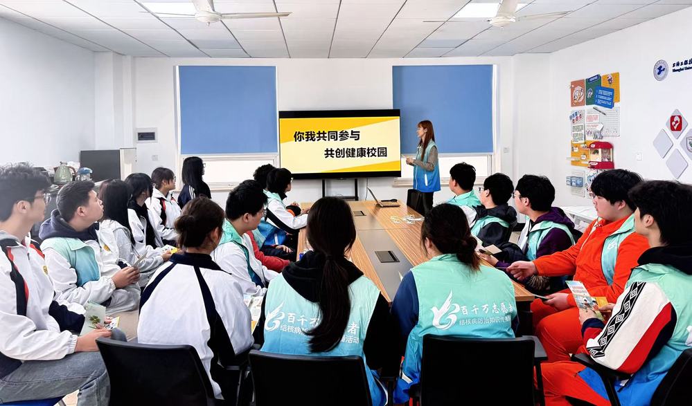 为保障宣传活动专业有序开展,活动前期,卫生所率先在学校“健康小家”(教学楼101教室)为学生志愿者开展结核病防治专题培训。志愿者们通过观看科普宣教视频、参与疾控专员现场快问快答、研读专题科普展板等多样形式,系统掌握了结核病的传播特征、科学预防举措、自我筛查方法等核心内容,并围绕校园公共卫生防控、结核病知识普及落地路径等内容展开深入交流研讨,为后续现场宣传工作筑牢专业基础。